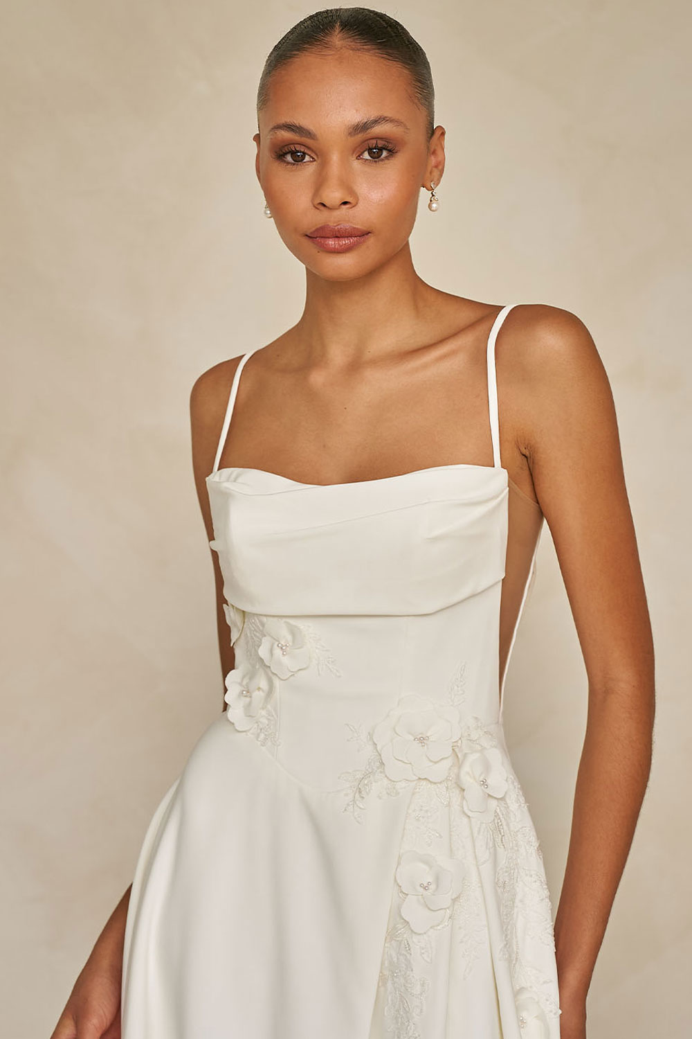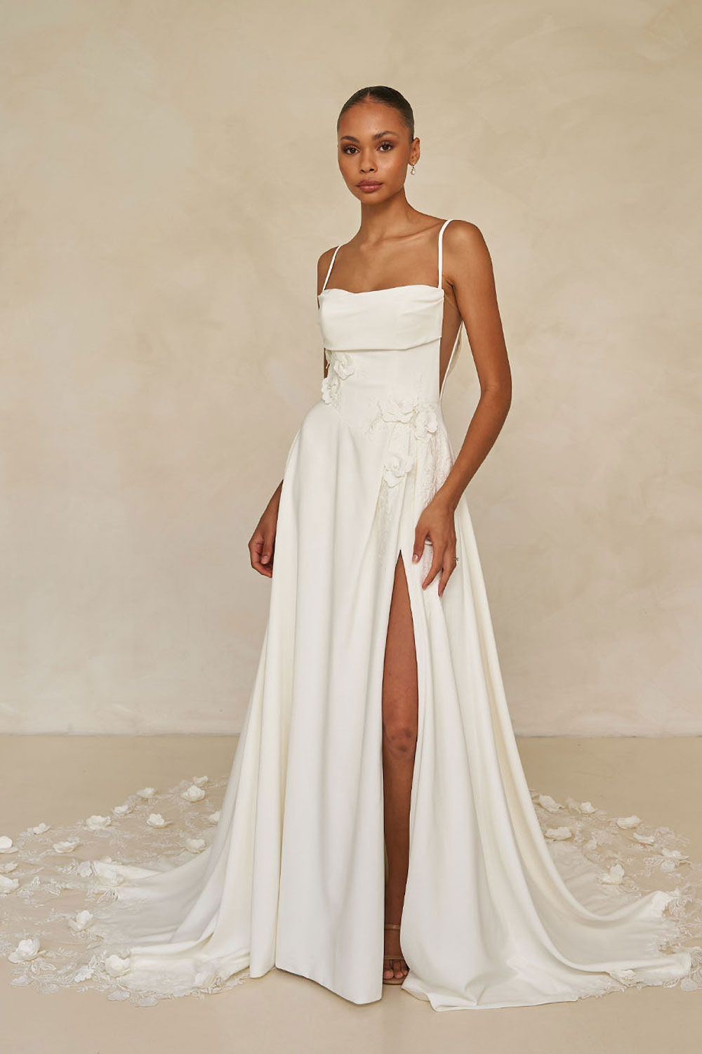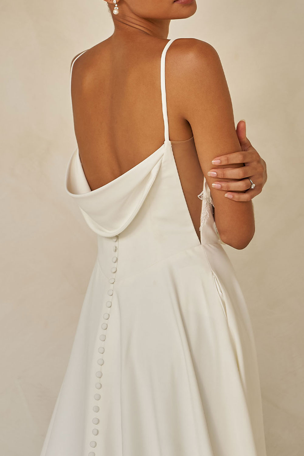 We offer many customisations on our range of Madi Lane wedding gowns to suit your personal style, including fabrication, lining, leg split and bust cups etc. Ask your retailer for the available options for Westcott.