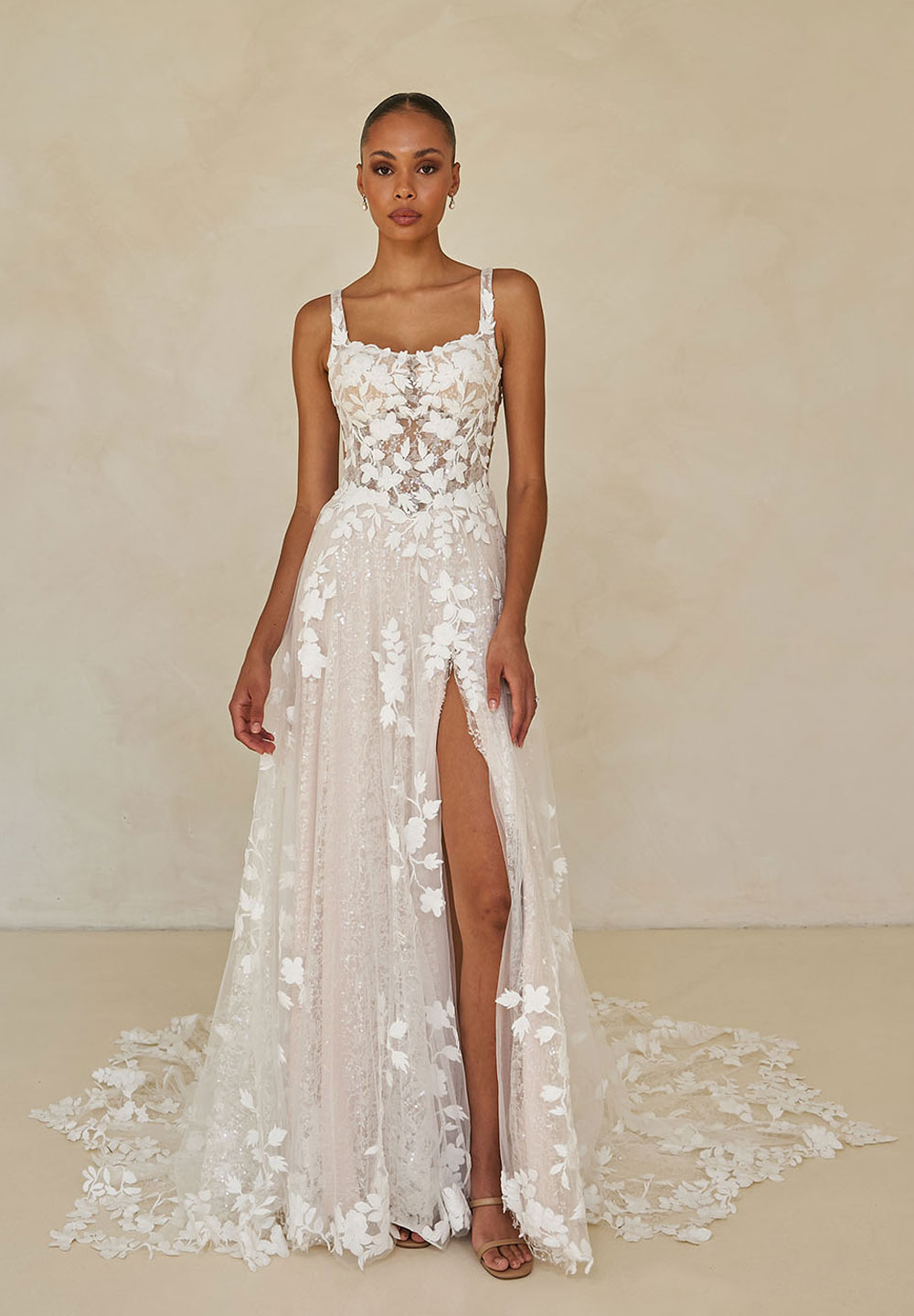 We offer many customisations on our range of Madi Lane wedding gowns to suit your personal style, including fabrication, lining, leg split and bust cups etc. Ask your retailer for the available options for Wimmer.