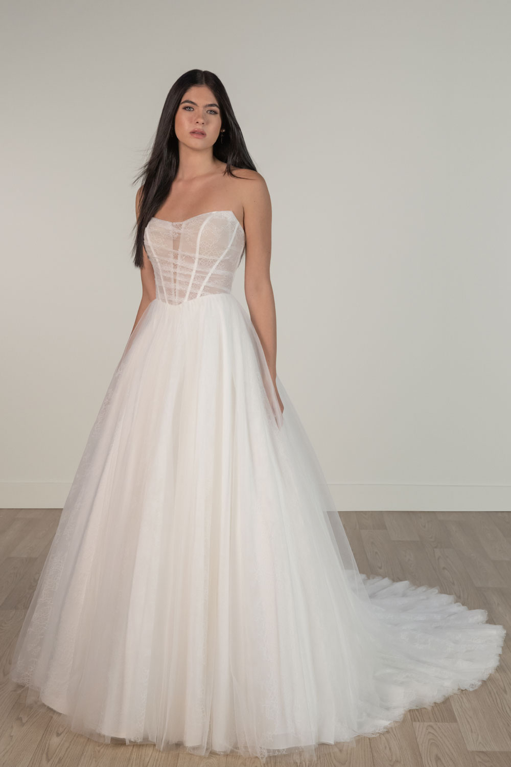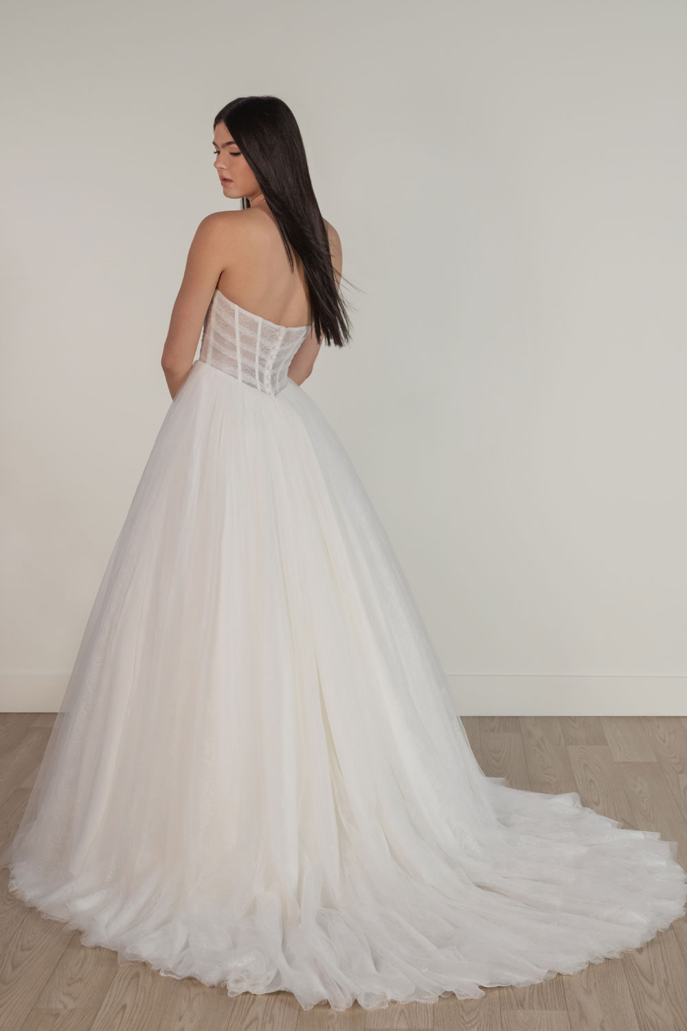 Modern Romantic Strapless Ruched Tulle Wedding Dress