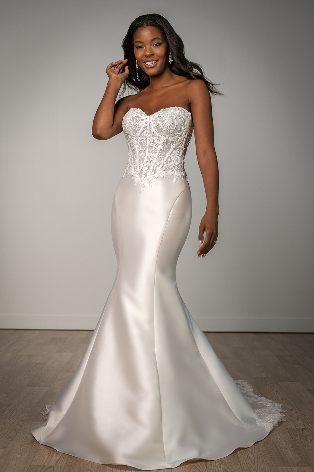 Strapless Mikado Fit-and-Flare Wedding Dress with Corset Bodice