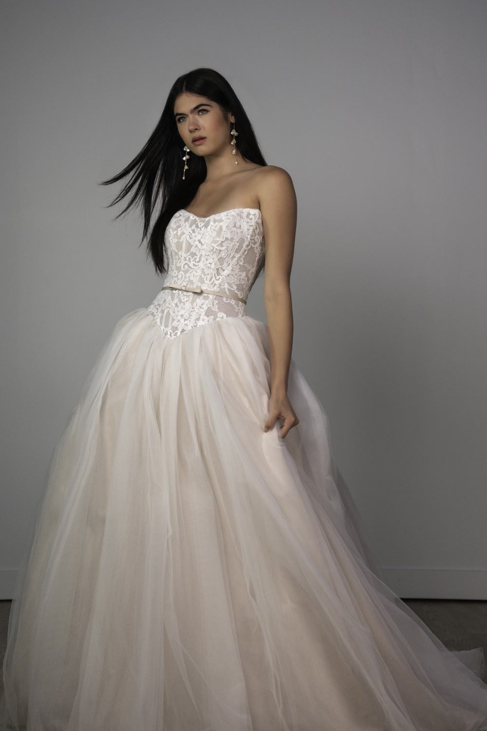 Strapless Lace Ballgown Wedding Dress with Detachable Velvet Bow