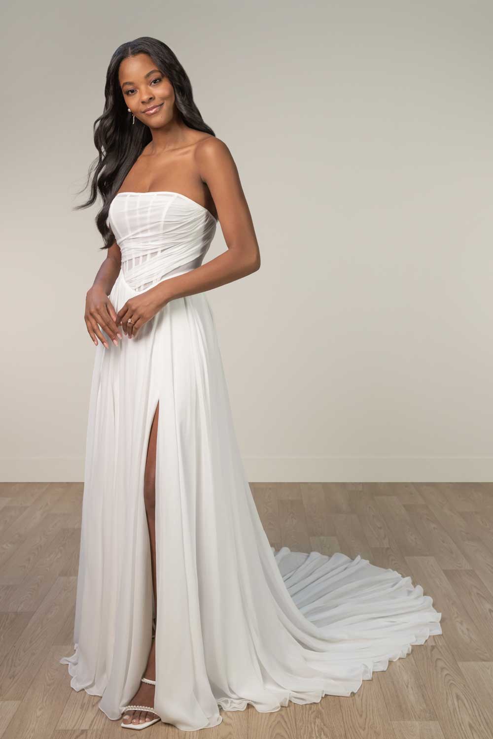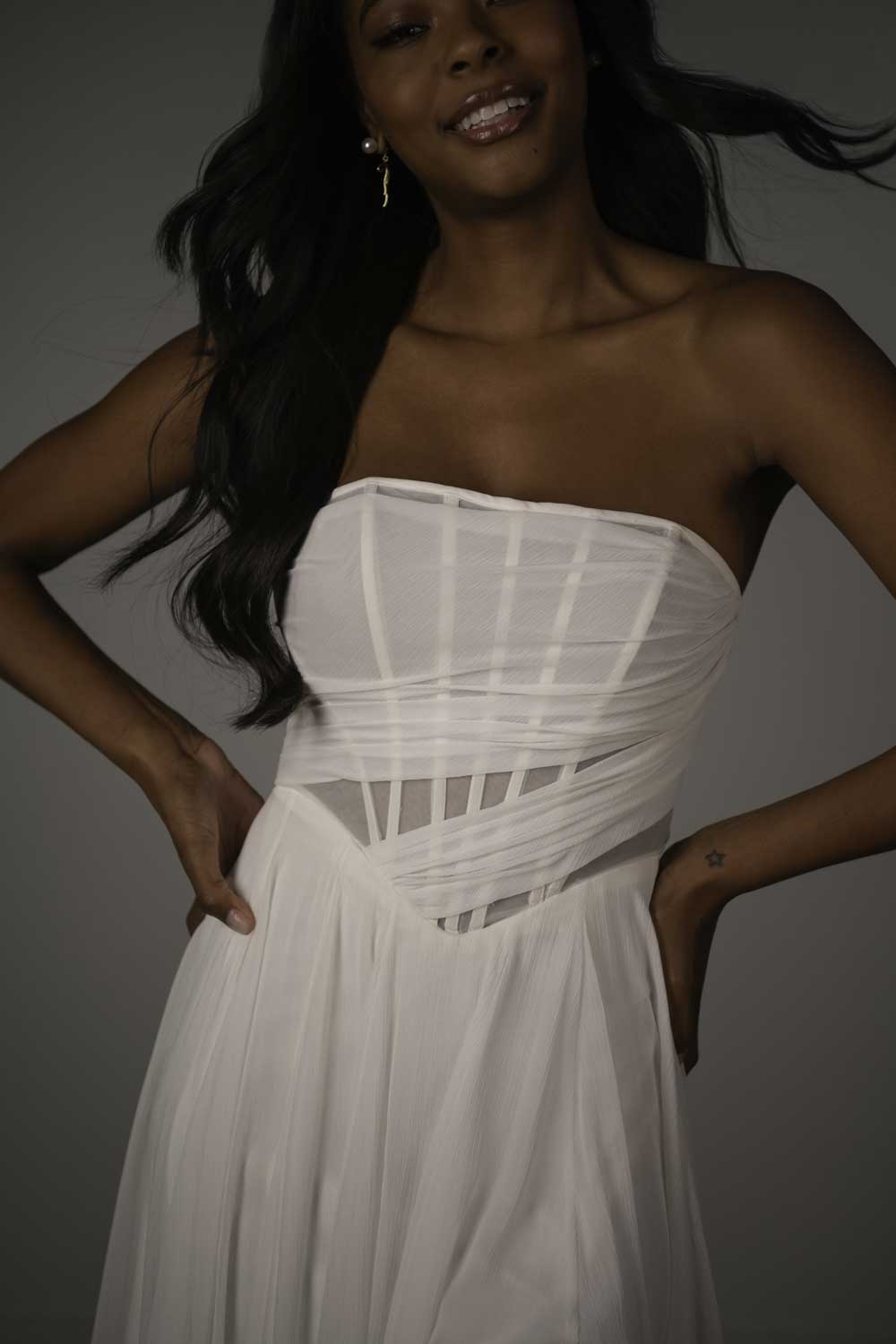 Strapless Draped A-Line Wedding Dress with Exposed Boning Corset